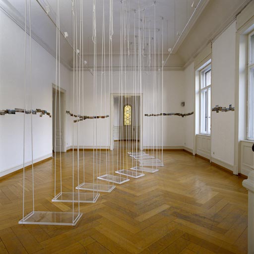 11 transparente Schaukeln aus Plexiglas und Nylontau, Schaukeln je 3 x 80 x 25 cm, Montage variabel.